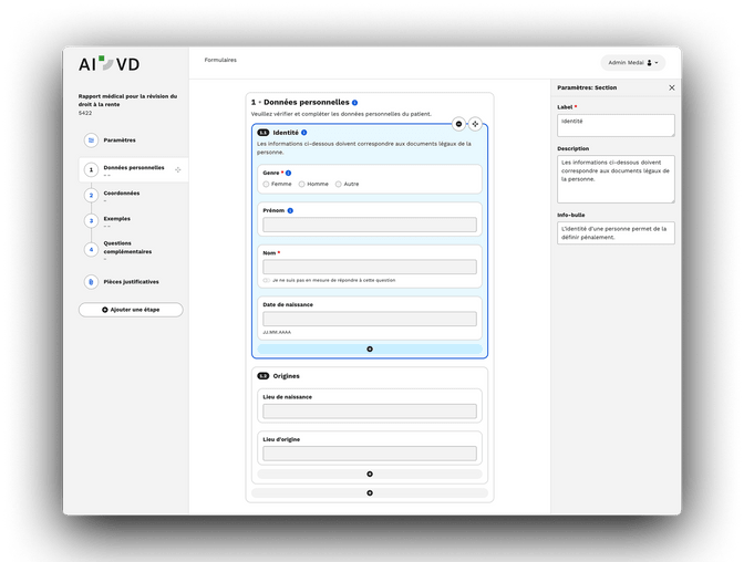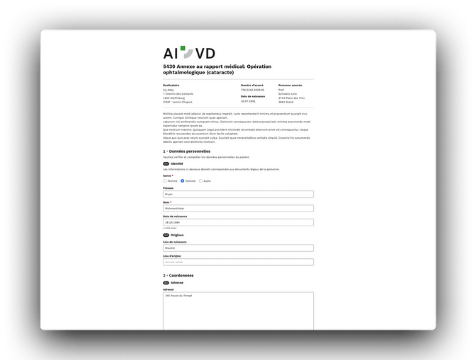 Beyond medical reports, MedAI includes a variety of other forms, all managed with JSON Forms. Thanks to its modular nature, JSON Forms adapts well to different form types.