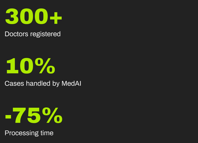 The The MedAI platform went live at the end of 2024 with a first version designed exclusively for individual doctors. This allowed us to test the tool with first users, who created an account and began processing their first cases. After the initial 6-month pilot phase (without active communication from the OAI), more than 300 doctors had registered, and around 10% of medical reports were already being processed via MedAI. The AI/IV Office estimates that the processing time for cases has been reduced by a factor of four. These are highly encouraging results.